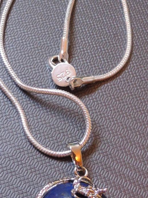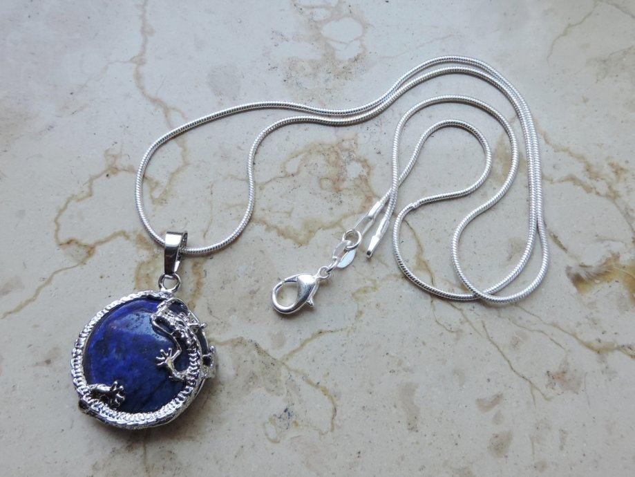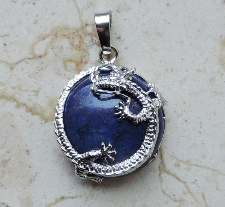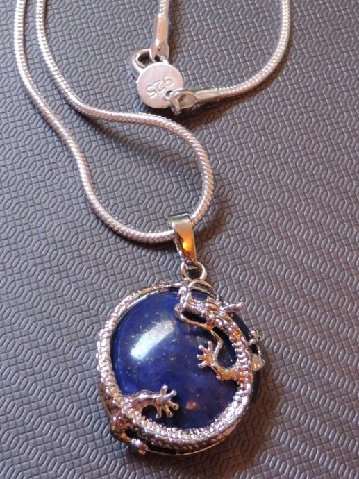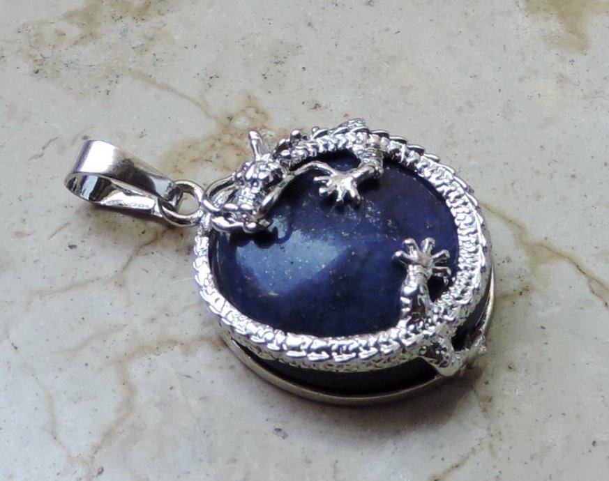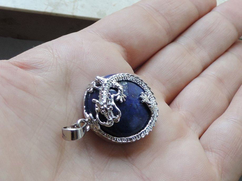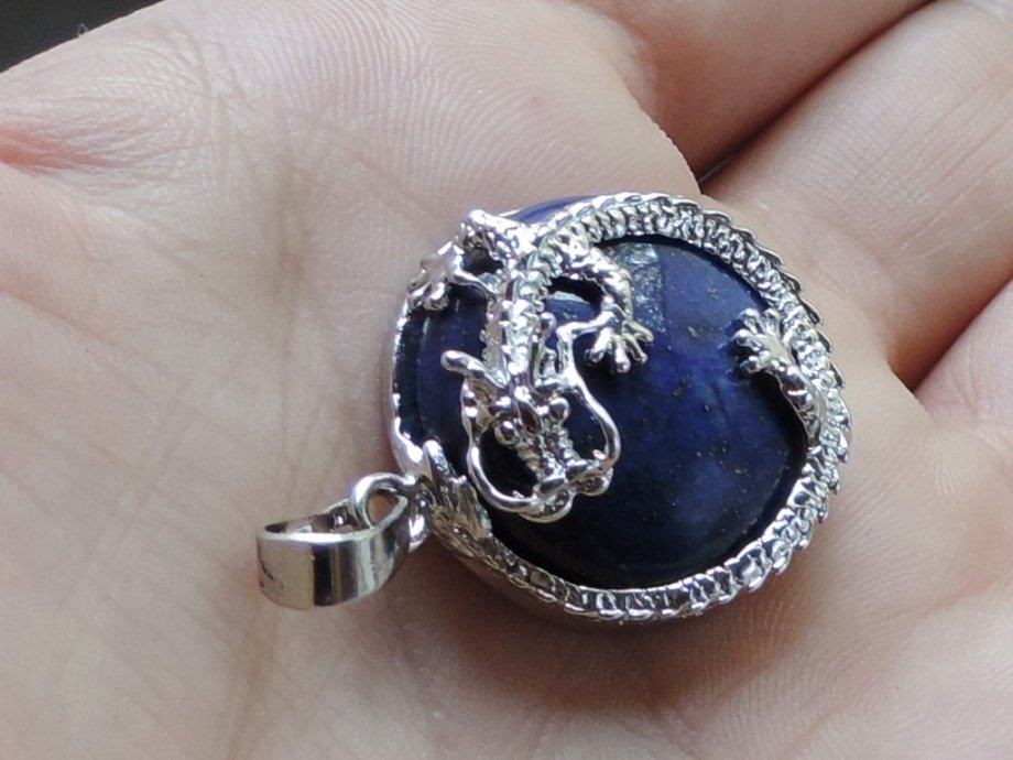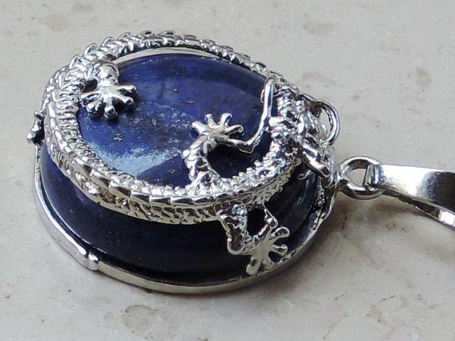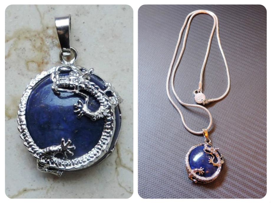 originalan privjesak koji se sastoji od oblog plavog kamena (poludragi kamen lapis lazuli) uokvirenog tijelom zmaja, na pripadajućem lančiću