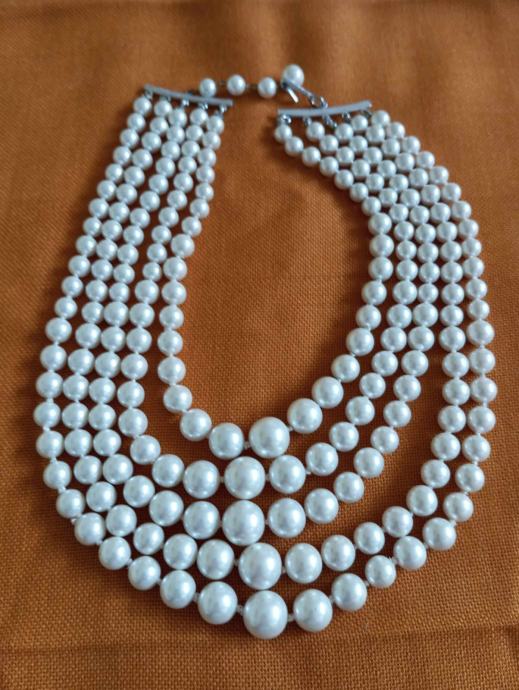 2. Ogrlica od umjetnih bisera u 4 niza, 43 cm, cijena 20 eur.