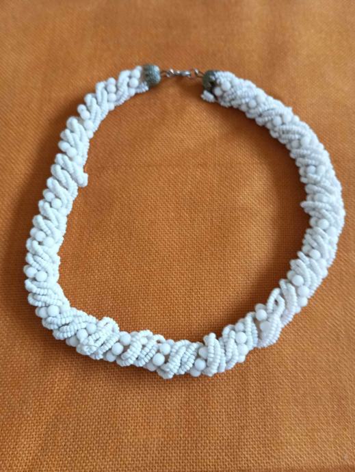 1. Bijela ogrlica od pletenih perlica 44 cm, 10 eur