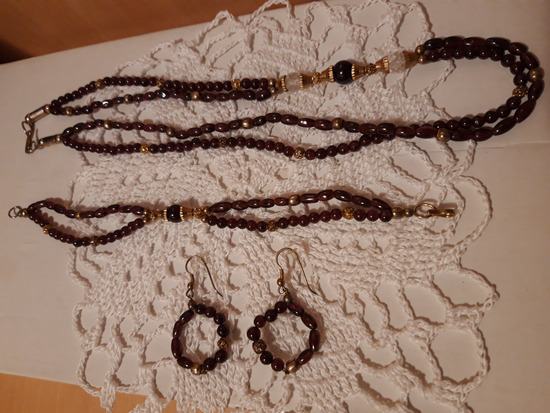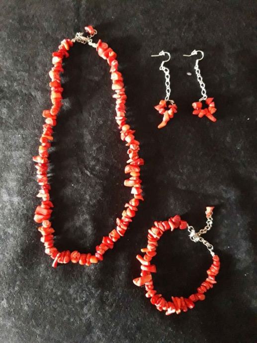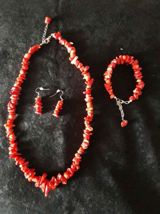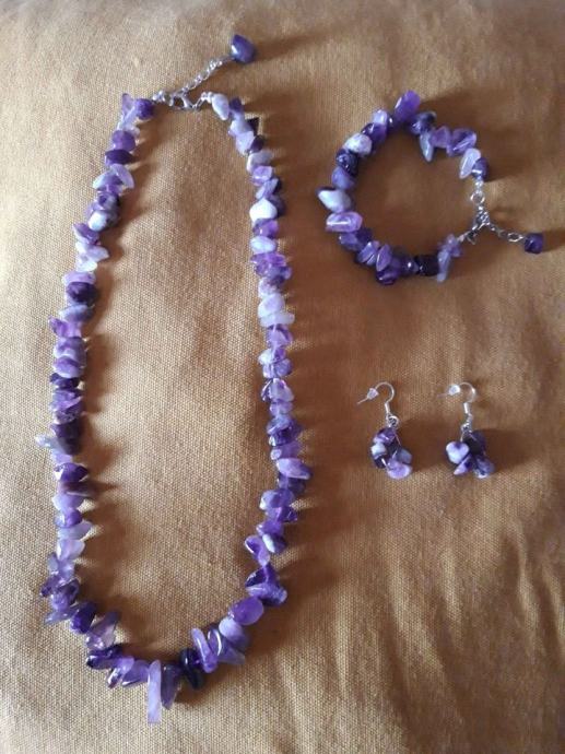 Kompleti od poludragih kamena tigrovo oko, amatist, granat i koralja, cijena kompleta 40 eura