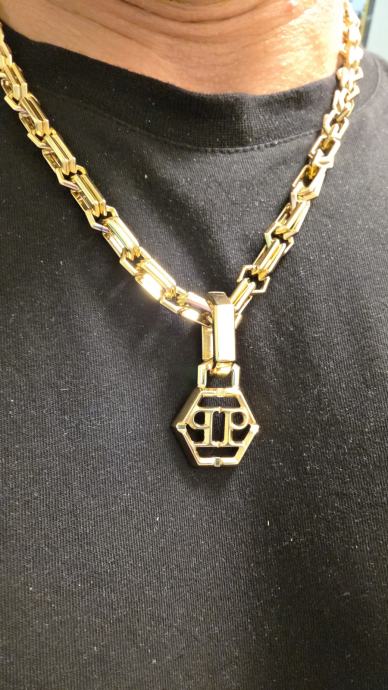 Prodajem malo nošen Philipp Plein muški lančić izrađen od nehrđajućeg čelika. Elegantan dizajn s prepoznatljivim PP privjeskom savršen je dodatak svakom outfitu. Lančić je u odličnom stanju i dolazi s originalnim detaljima brenda.