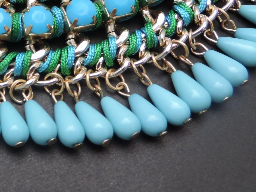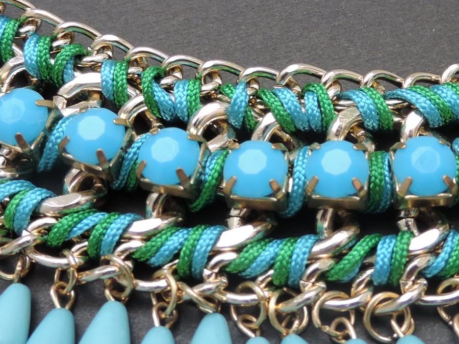 kombinacija plavog i zelenog konca; zlatni lanac