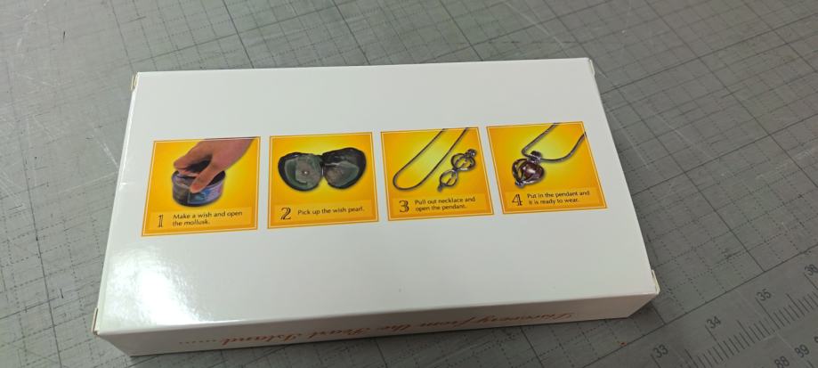 Ovaj poseban poklon set donosi jedinstveno i emotivno iskustvo darivanja. U elegantnom pakiranju nalazi se prava školjka u kojoj je skriven prirodni biser. Primatelj sam otvara školjku, otkriva biser i potom ga postavlja u privjesak, koji se nosi kao ogrlica oko vrata.