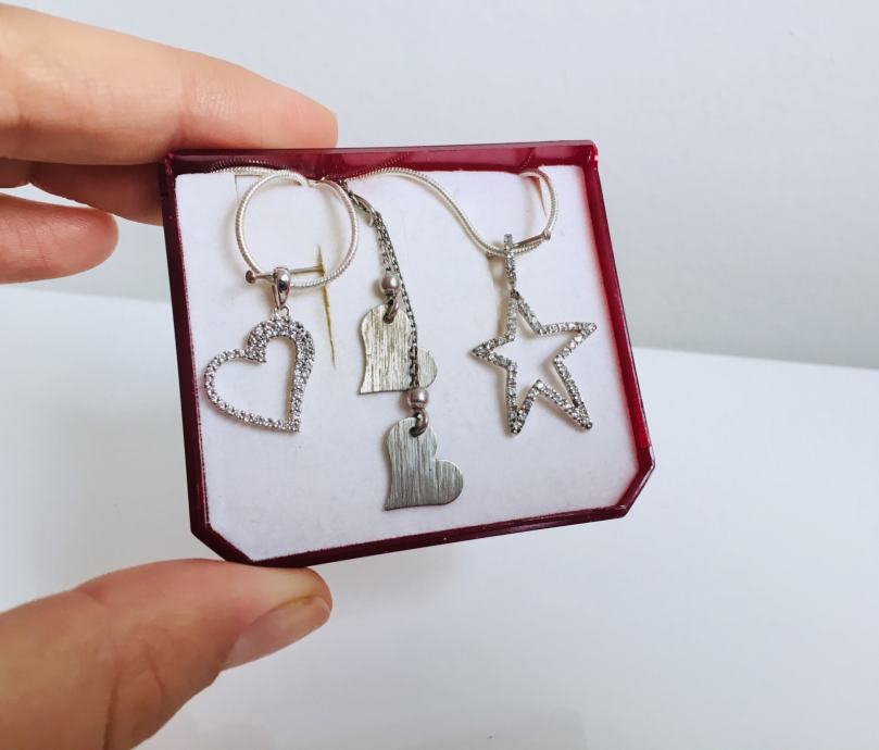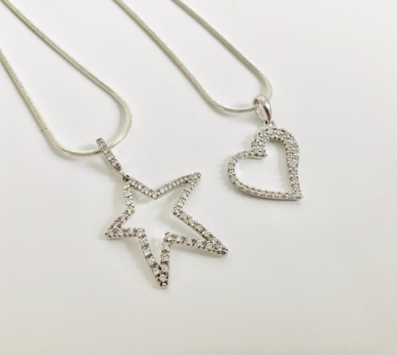 SRCE I ZVIJEZDA OD PRAVOG SREBRA. Dolaze uz srebrni lančić.