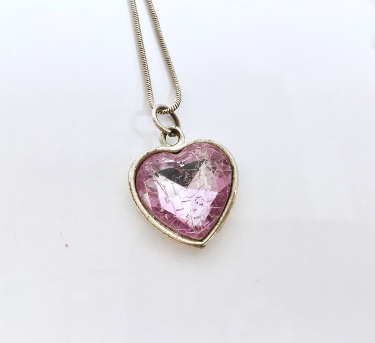 PREDIVNO RUŽIĆASTO SRCE, dobiveno na poklon. Elegantan, profinjen i decentan privjesak uz srebrni lančić. Idealan za poklone.