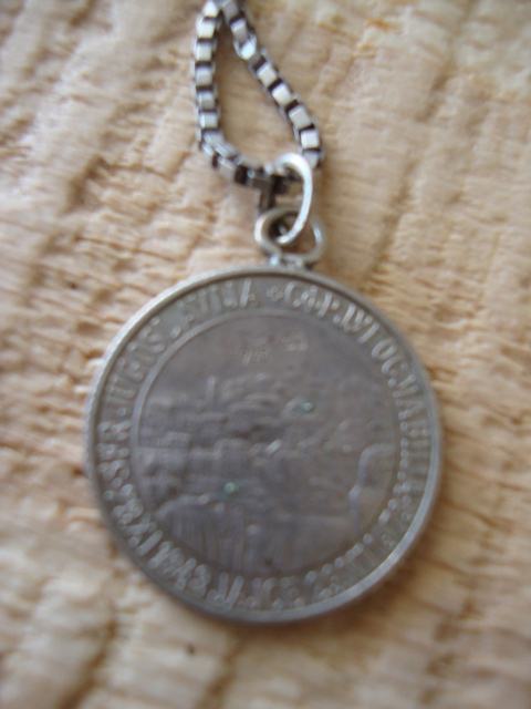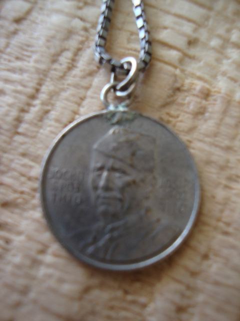 Privjesak, kao i lančić su srebrni... Dužina lančića je 50 cm, a veličina privjeska kovanica od 50 lipa