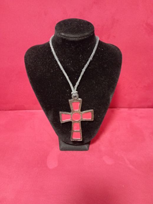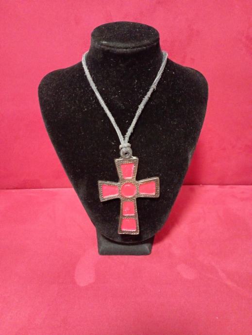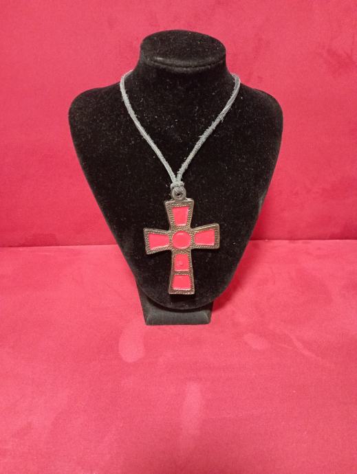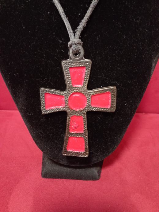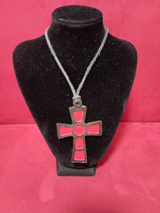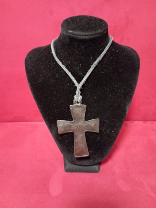 Metalni privjesak križ na koži, veći ,dužine oko 8 cm,poseban,atraktivan,upečatljiv..., pogledajte i ostale moje oglase, šaljem poštom, tekući