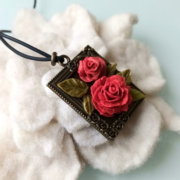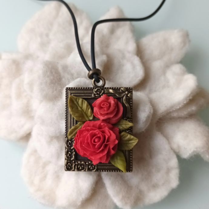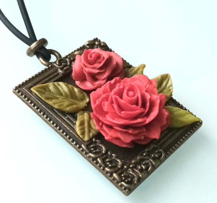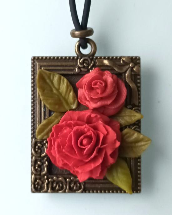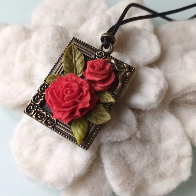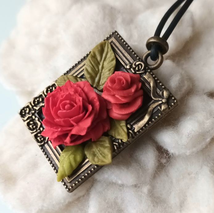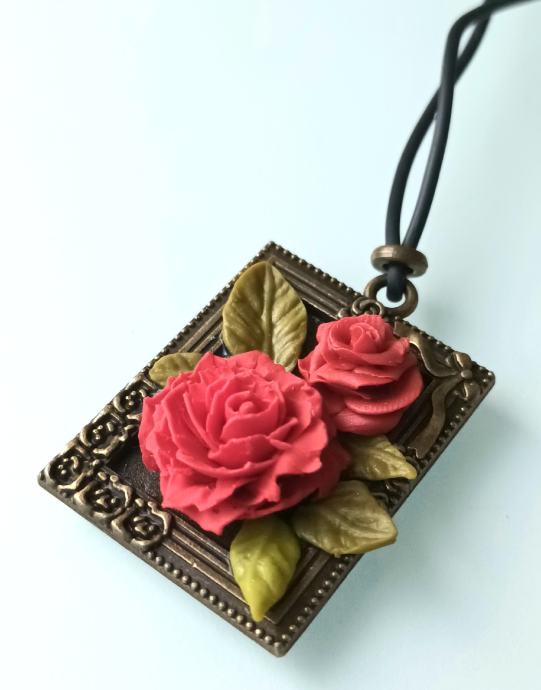 Privjesak,ogrlica s motivom ruza izrađenih od polimerne gline.Filigranski rad,unikat.