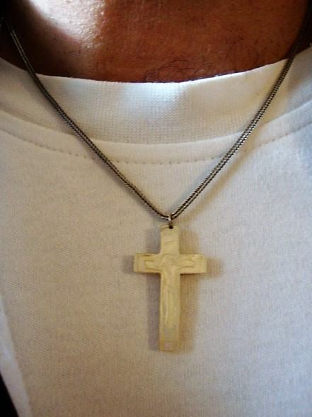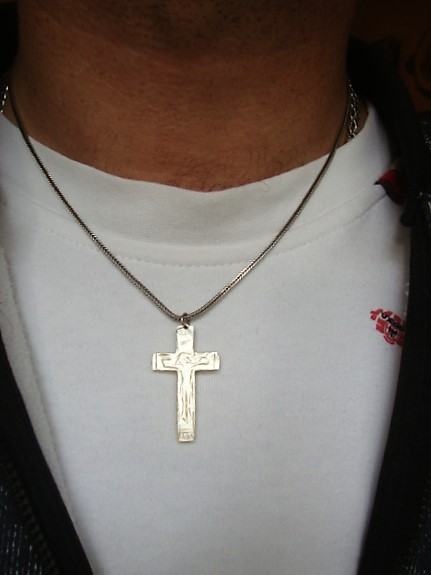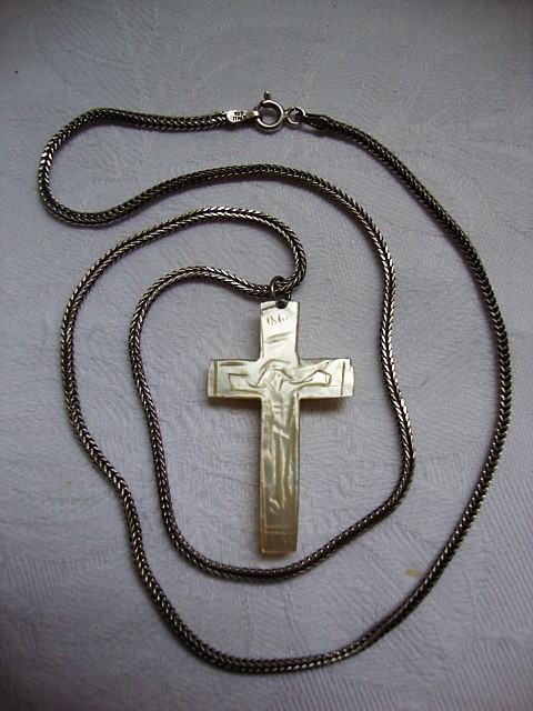 Privjesak kombinacija srebro i sedef raspelo iz 19 stoljeća ručno ukrašeno na srebrnoj vintage ogrlici od srebra 925