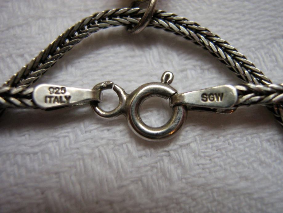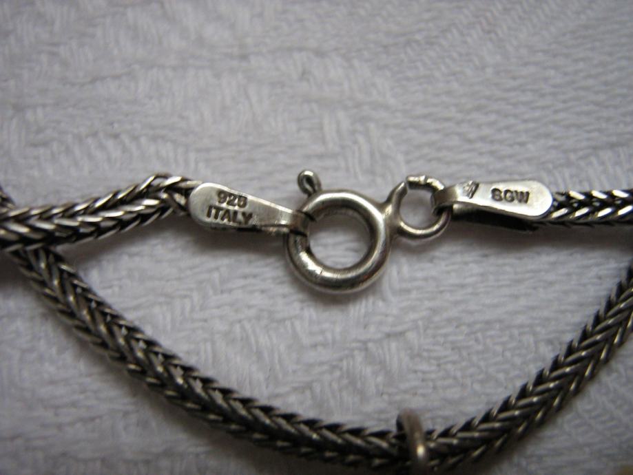 Ogrlica predivnog sitnog i čvrstog pleta stara Italija sa 4 oznaka za srebro oko 70 godina stara idealno se uklopila na ovaj predivan uknikatni privjesak