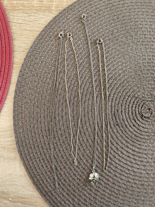 Prodajem tri fina srebrna lančića različitih duljina. Lančići su tanki i diskretni, savršeni za svakodnevno nošenje ili kombiniranje s privjescima. Jedan lančić ima mali okrugli privjesak, dok su ostala dva jednostavna. Svi su u dobrom stanju i spremni za novo vlasništvo.
