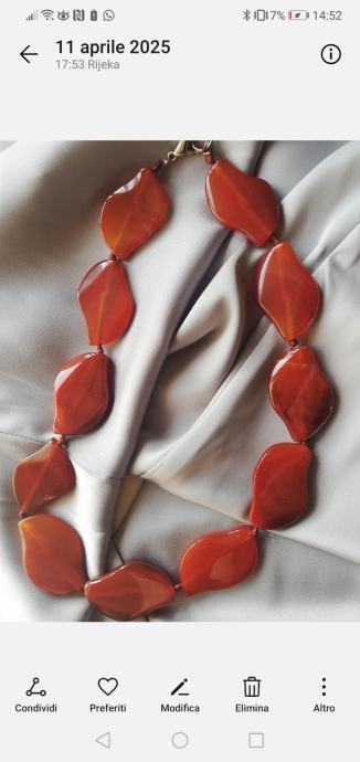 Raskošna ogrlica od karneola. Perle laserski oblikovane, zlatarski čvor.