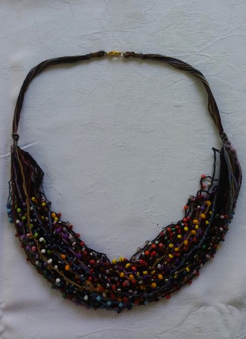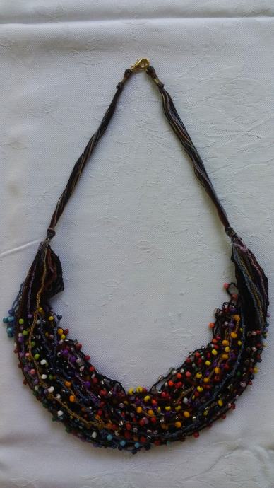 Prodajem ogrlicu od šarenih perlica, nanizanih na čvrstim koncima.
