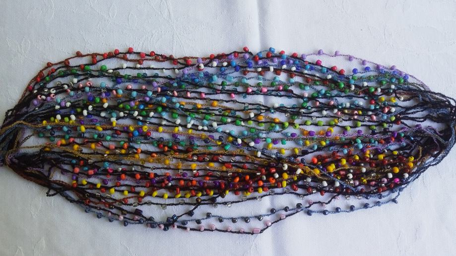Ukupno 40 konaca u ogrlici, na svakom je različita kombinacija boja perlica.