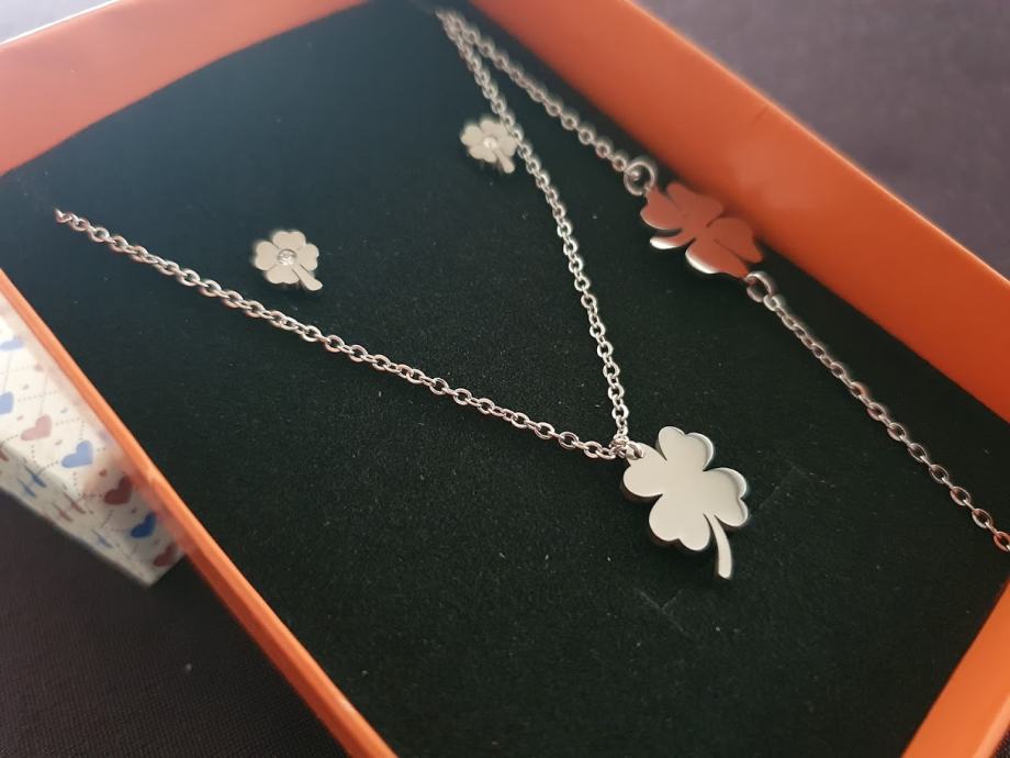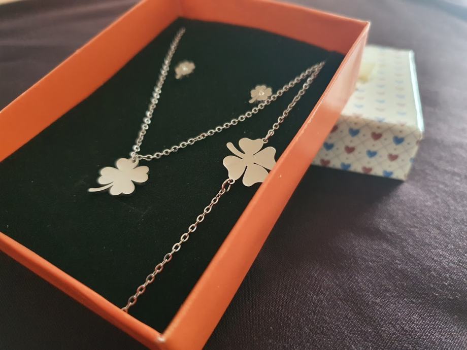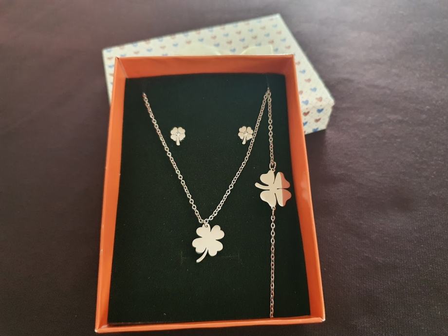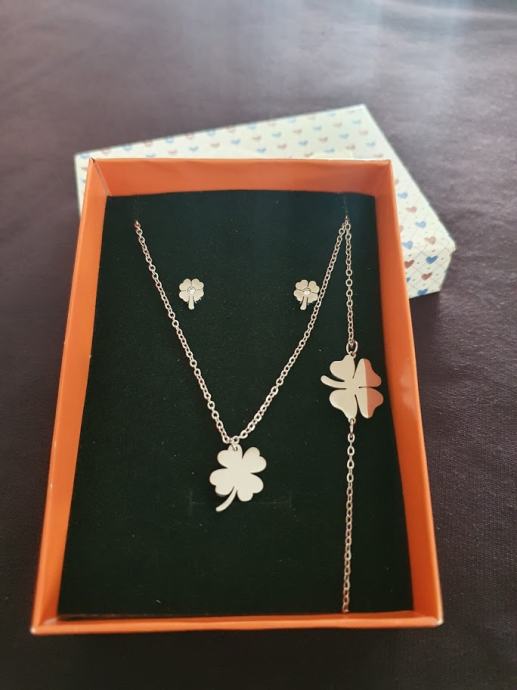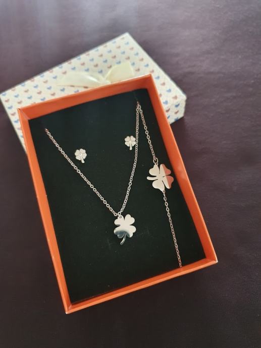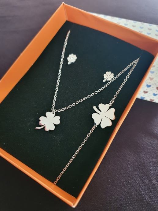 Set kirurški čelik lančić, narukvica i naušnice djetelina