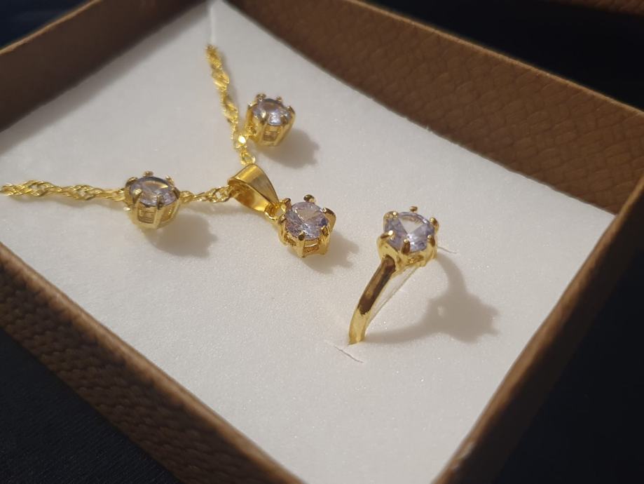 Set ženski lančić, naušnice i prsten