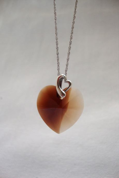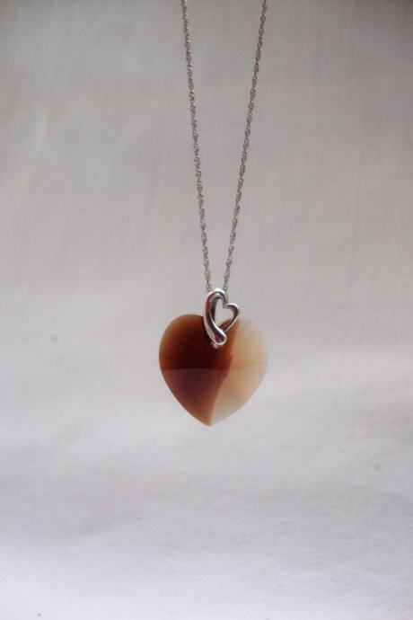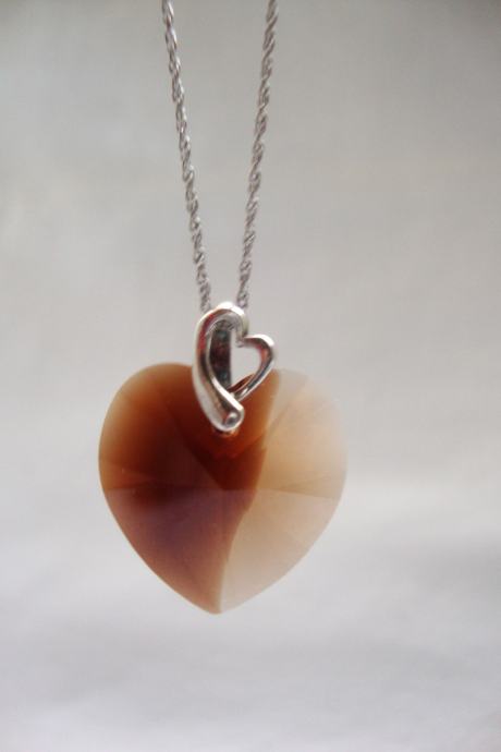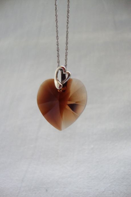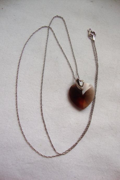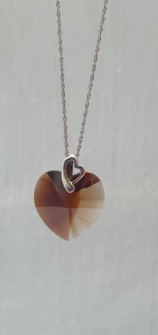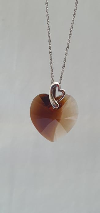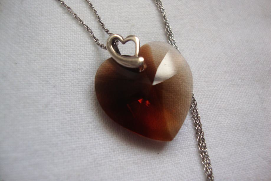 Predivno ručno izrađen privjesak srca od kristala boje breskve slići na smooth quartz dimljeni ali puno lijepšeg sjaja i fasetne obrade