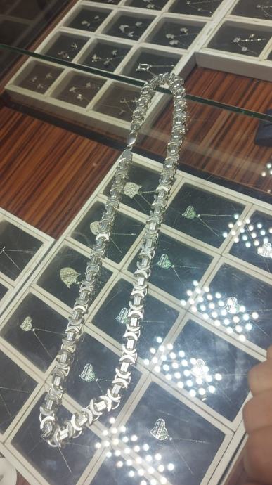 Srebreni lanac 925, chanellov vez , debljine 13mm, težine 200g, rodiniran