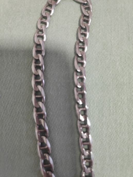 Srebreni dosta dugacak lancic duzina 60 cm,tezina 29 grama ,jako lijep ....cjena 100 eura .....091/9571-089