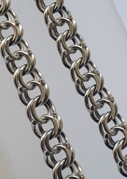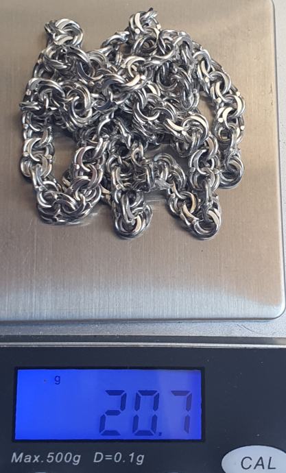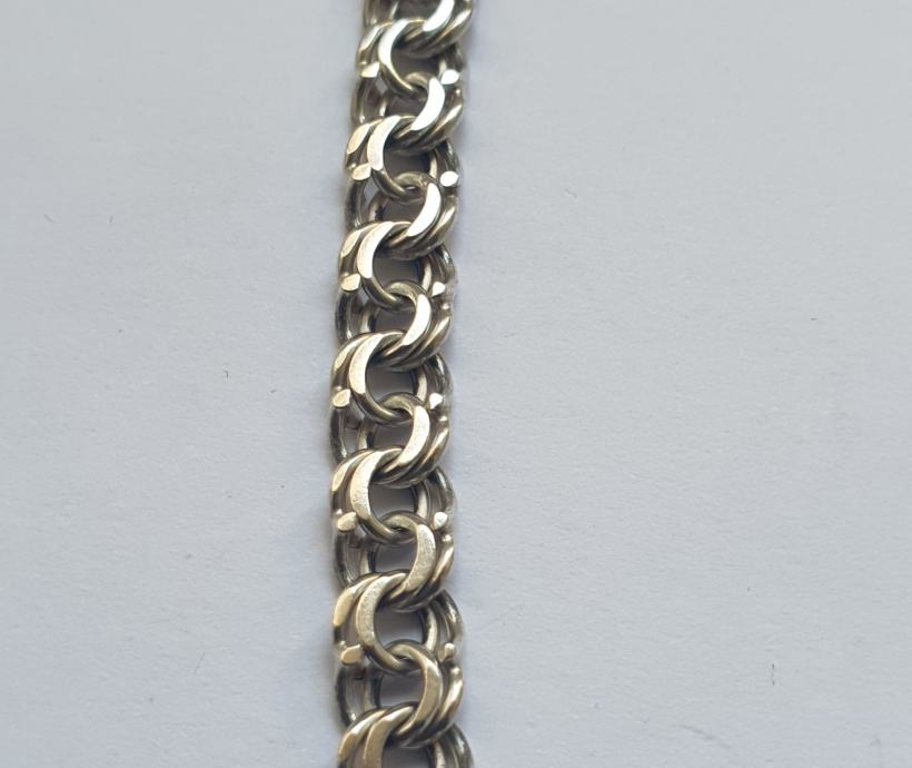 Vrhusnka srebrna igrlica u srebru 835 rucni rad predivan i rijedak plet deblje 5 mm ukuone dužine 48 5 cm u savrsenom stanju oznaka za srebri na fiksnoj alkici