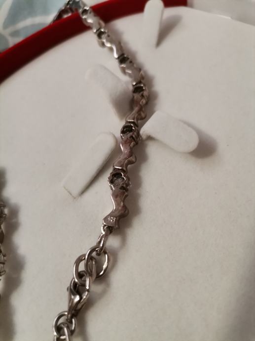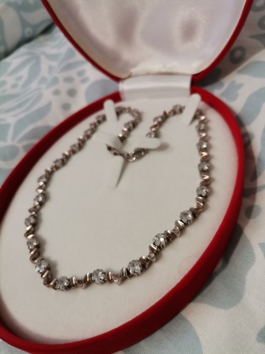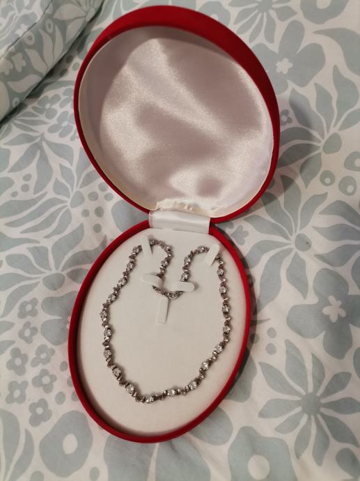 Prodajem predivnu srebrnu ogrlicu s kamenčićima, savršenu za posebne prilike ili kao poklon voljenoj osobi. Ogrlica je nikad korištena, dolazi u originalnoj kutiji.