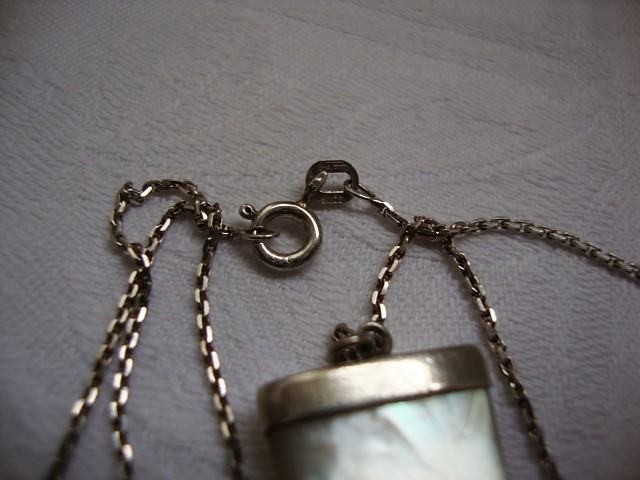Krasna ogrlica veoma lijepog dizajnerskog pleta vez kocokce pravokutne alla venecijaner zlatar potpisana FBM Friedrich Binder Pforzheima 1960 njemačka srebro 925 također i privjesak izrađen od sedefa sa alkicom od srebra