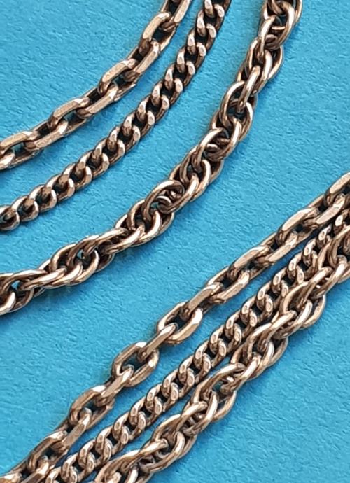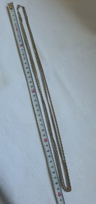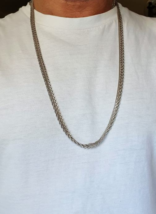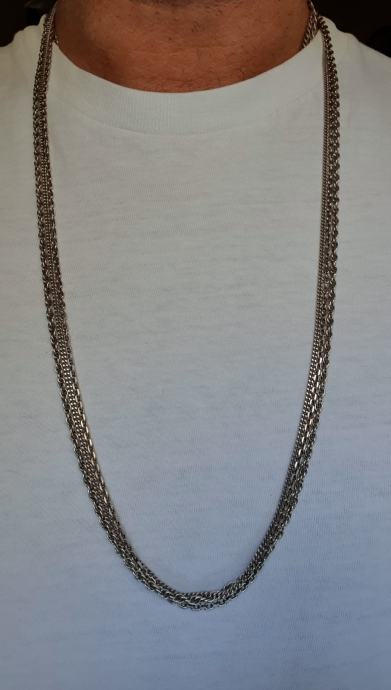 Iz fiksne kapice se račvaju tri predivana uzorka lanaca što čini krasan snop koji se nosi sam iako se moze i sa privjescima ukupne duzone 81 cm lanci debljine 3 mm (pancir vez ,kuban bez te pleteni vez )