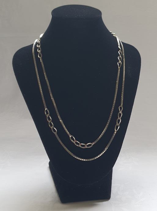 Krasan ultra dugački srebrni lanac unikatni primjerak kombinacija venecijaner vez kockice i figaro vez ukupne duzine od 92,5 cm x 3 mm venecijaner i 5 mm debljine figaro