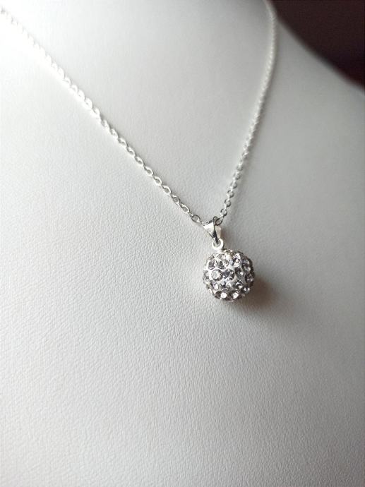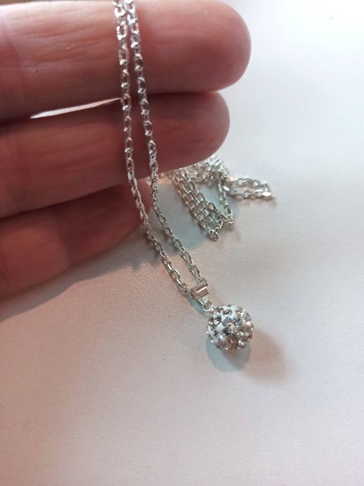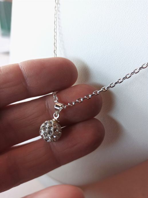Elegantni srebrni lančić sa srebrnim privjeskom u obliku kuglice sa cirkonima