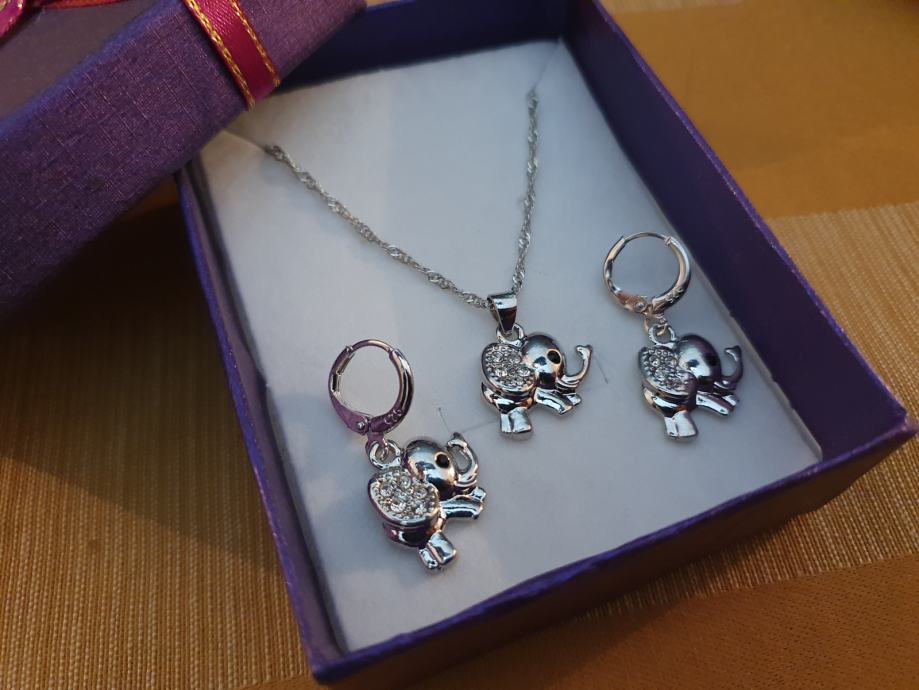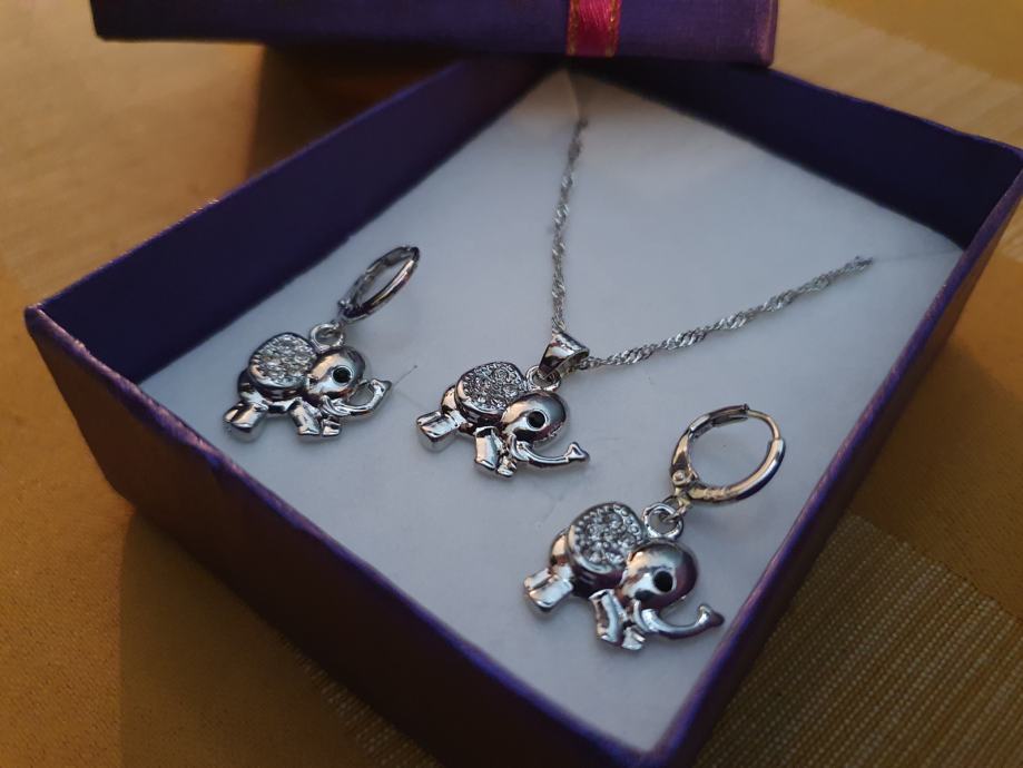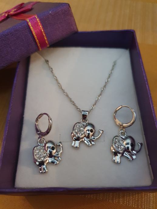 Set lančić i naušnice slonić, lijepog izgleda, privlacno za oko, jako lijep poklon, kvalitetno.