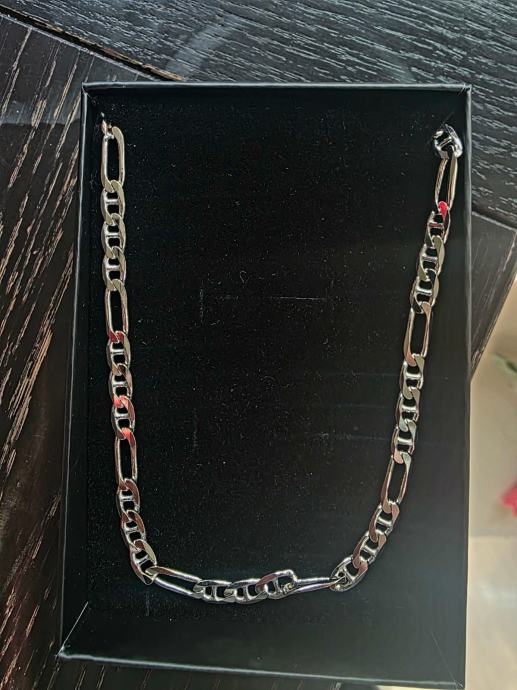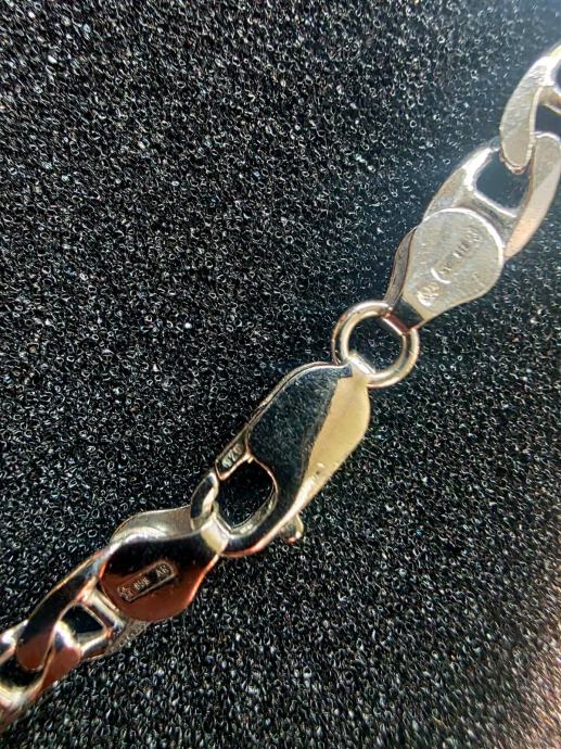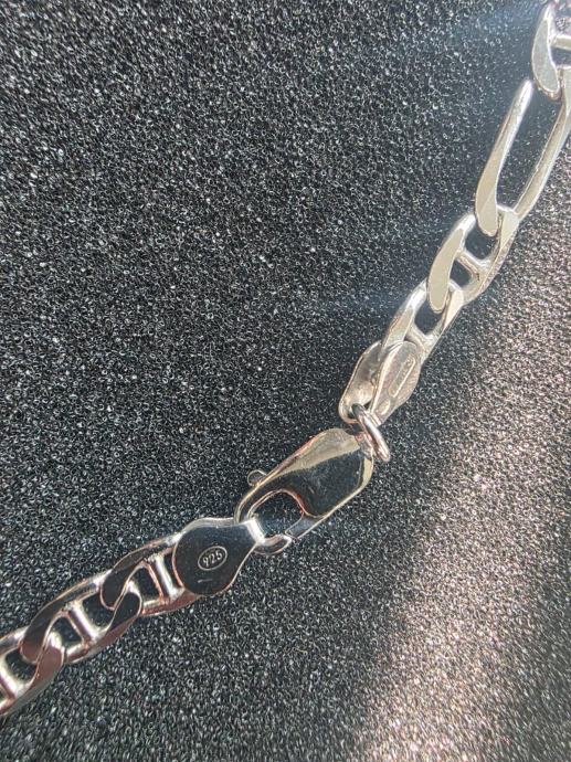 Prodajem srebrni lančić izrađen od srebra. Radi se o kombiniranom modelu s izmjeničnim karikama – figaro i mariner uzorka, solidne izrade s vidljivim žigom srebra na kopči. Kopča je karabiner tipa, praktična i pouzdana. Stanje je novo bez etikete.