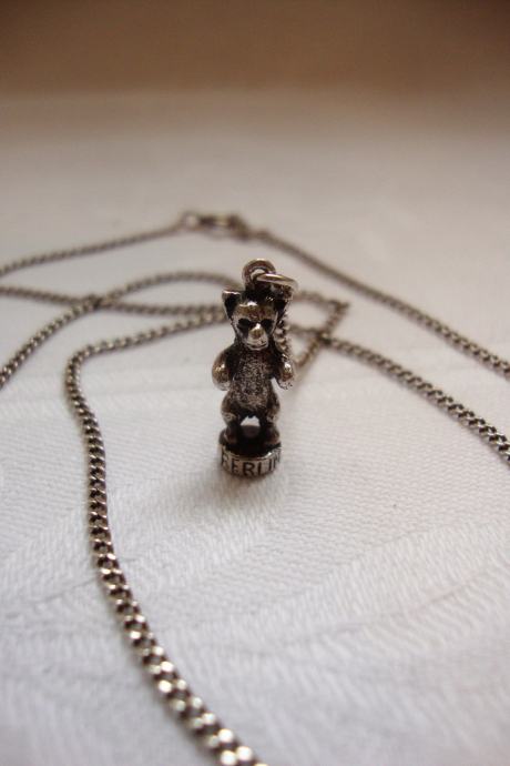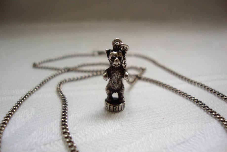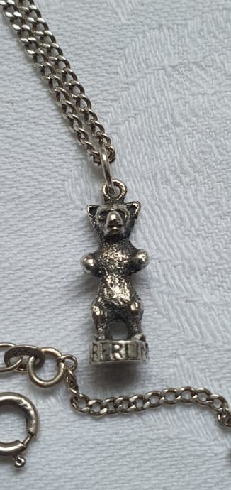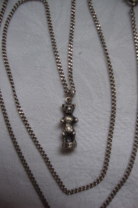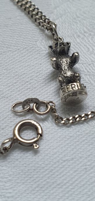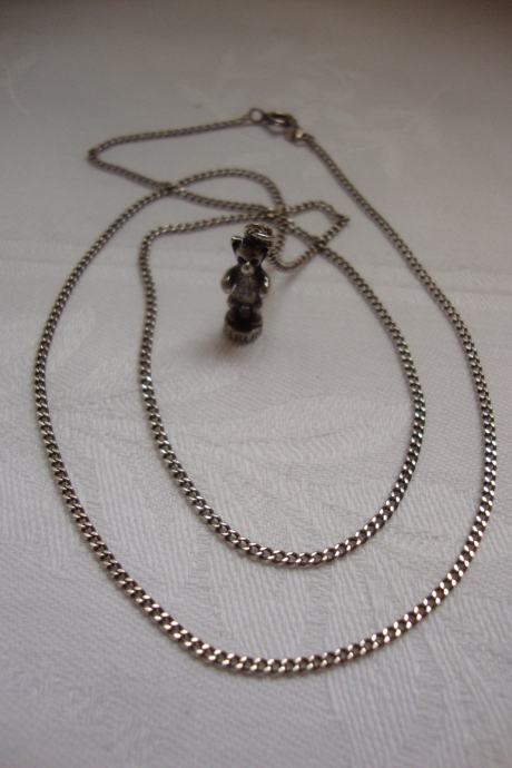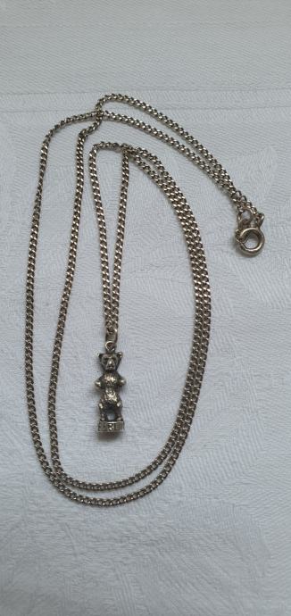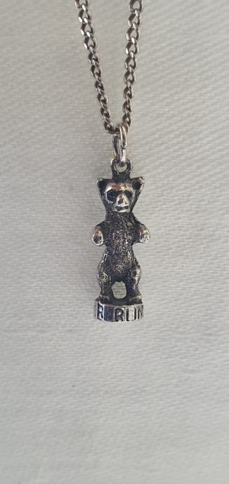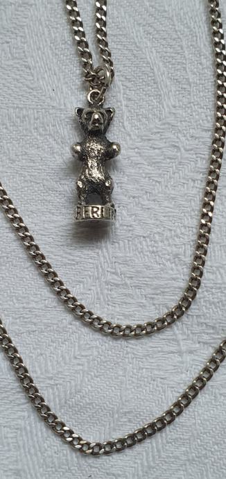 Privjesak mali medo i lančić komplet srebro 925 na fixnoj alkici žig kao i na kopći