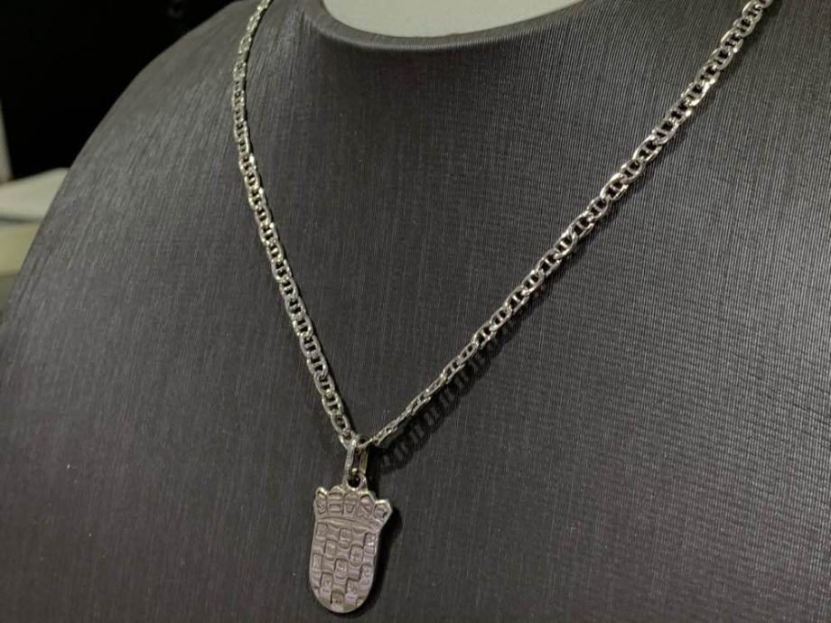 Srebrni lanac izrađen od srebra finoće 925/1000. Lanac je rodiniran što mu daje visoki sjaj te duži vijek trajanja jer Rodij štiti srebro od oksidacije.