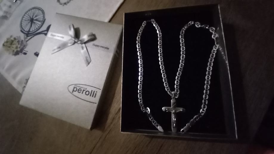 Prodajem Srebrni lančić sa privjeskom 925 kupljen u zlatarnici Perolli. Imam i račun... težina 20.250 lančića a privjesak je težine 4g.