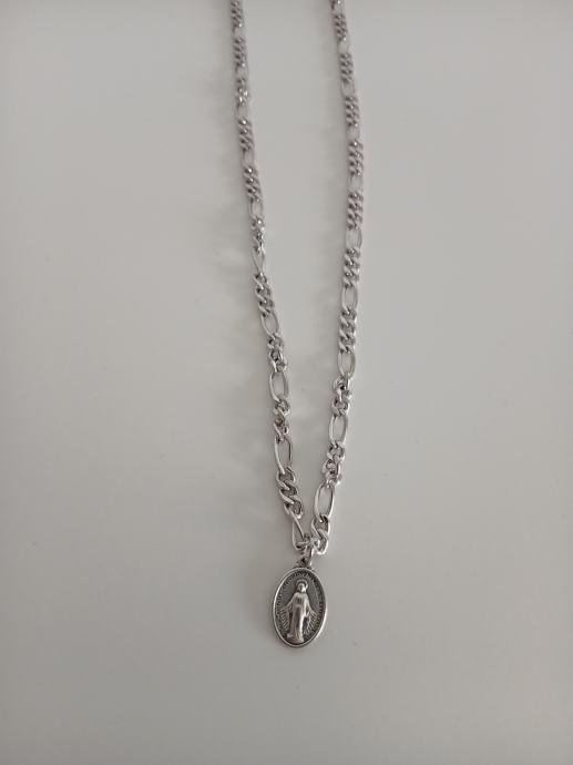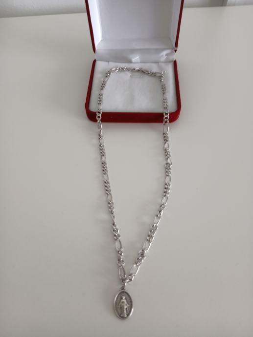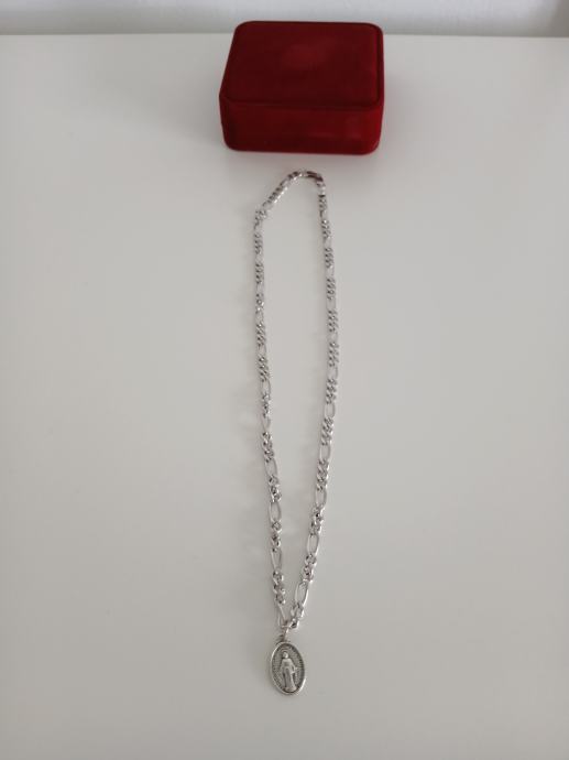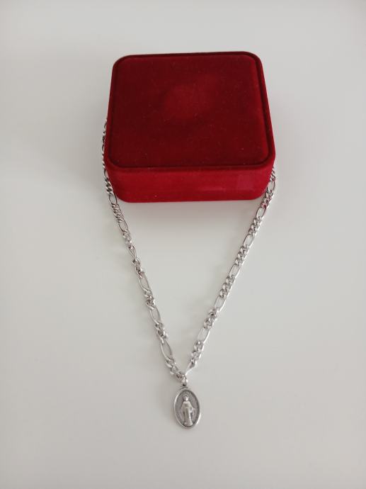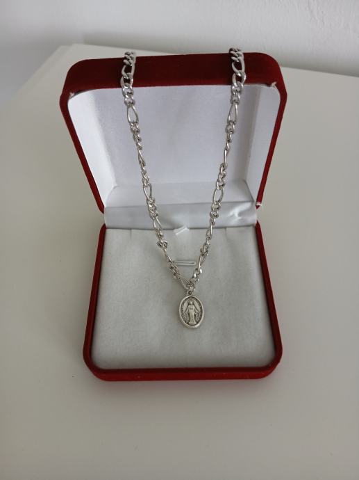 Prodaje se NOVI SREBRNI LANČIĆ + SREBRNI PRIVJESAK MAJKA BOŽJA + KUTIJA.