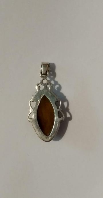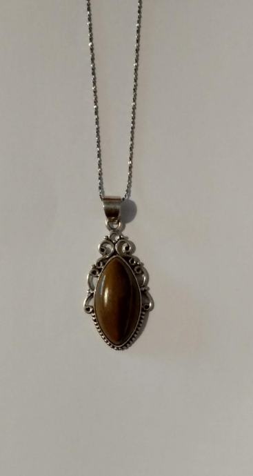 Novi srebrni privjesak s poludragim kamenom jaspisom. Srebro 925, sa žigom na poleđini.