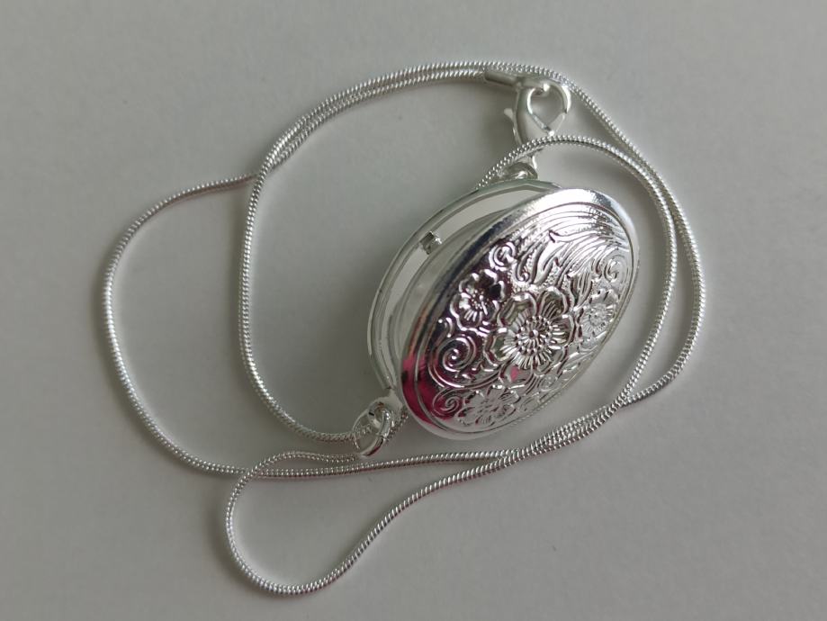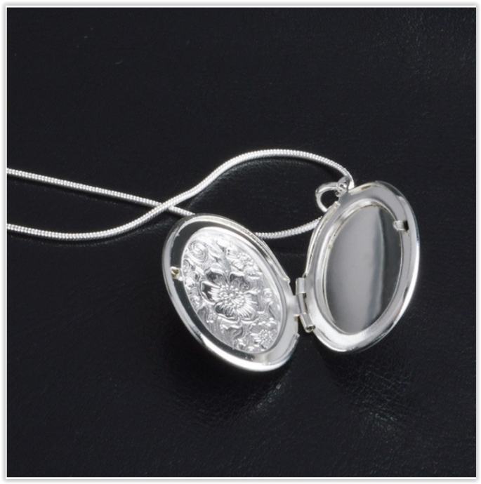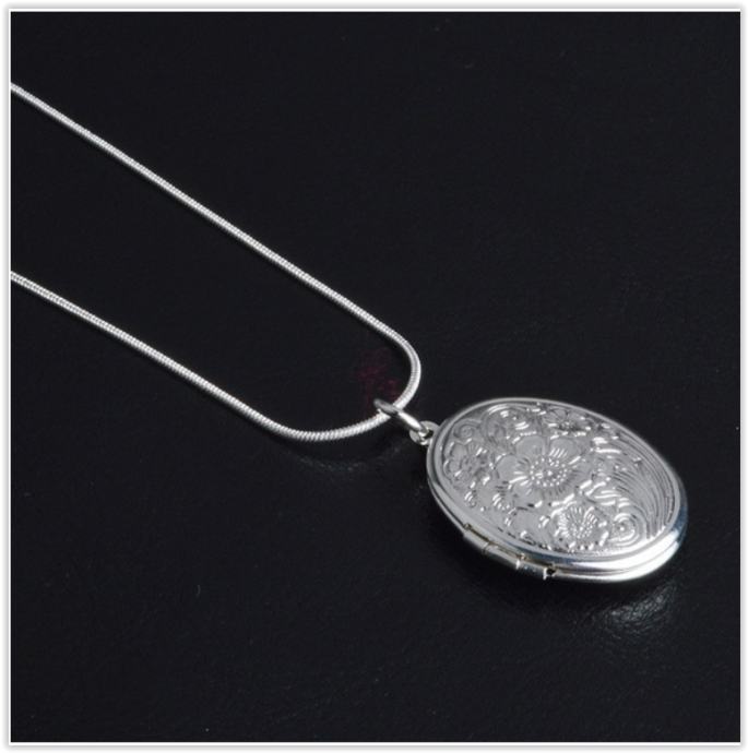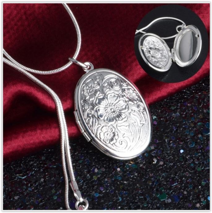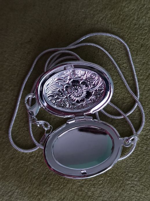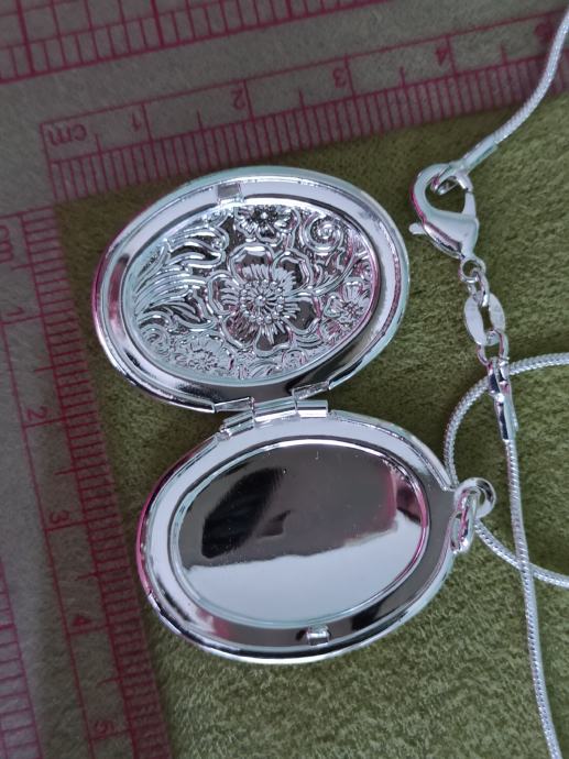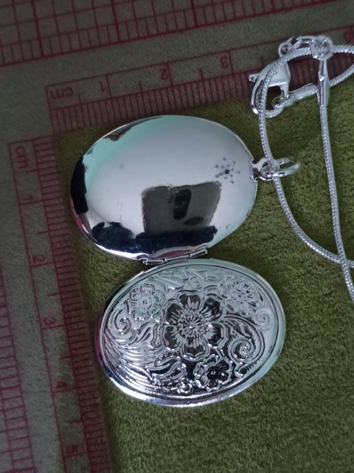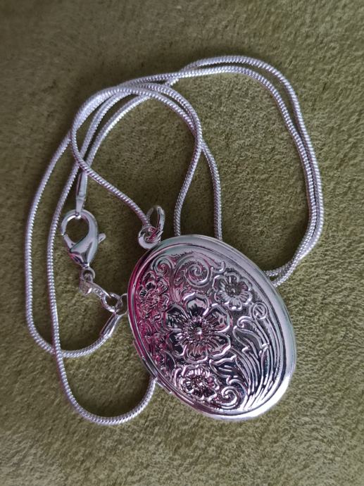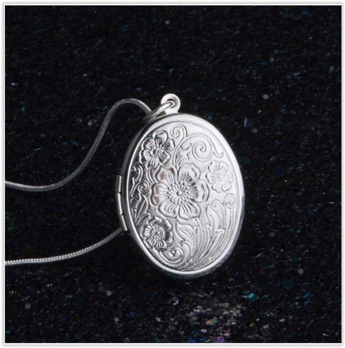 prekrasan romantični ovalni privjesak sa cvijetnim reljefom u koji se može umetnuti fotografija drage osobe,