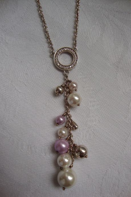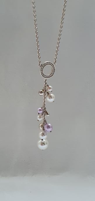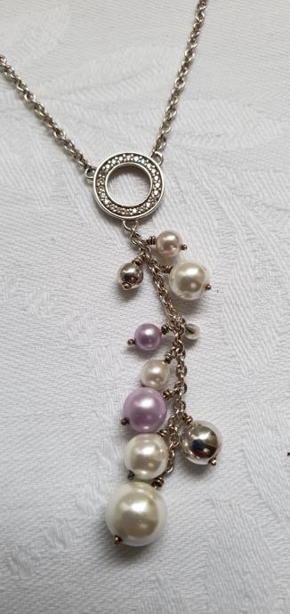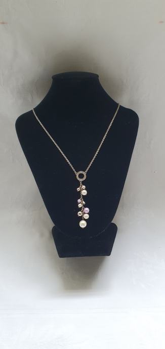 Privjesak sa krugičem ukrašen cirkonima ukupne visine sa biserima 6,5 cm