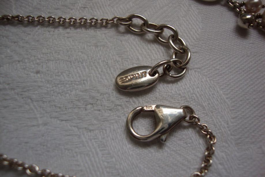 Ručni rad u srebru ogrlica lančić podesiva oznake za srebro 925 na kopči i fiksnom privjesku sa natpisom Esprit