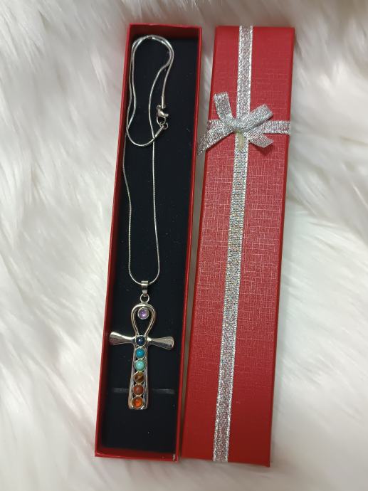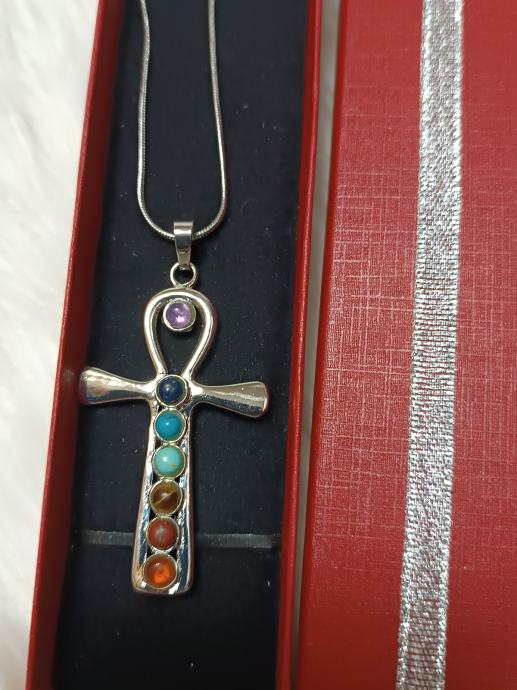 ogrlica od nehrđajučeg čelika, s privjeskom Ankh i 7 kristala