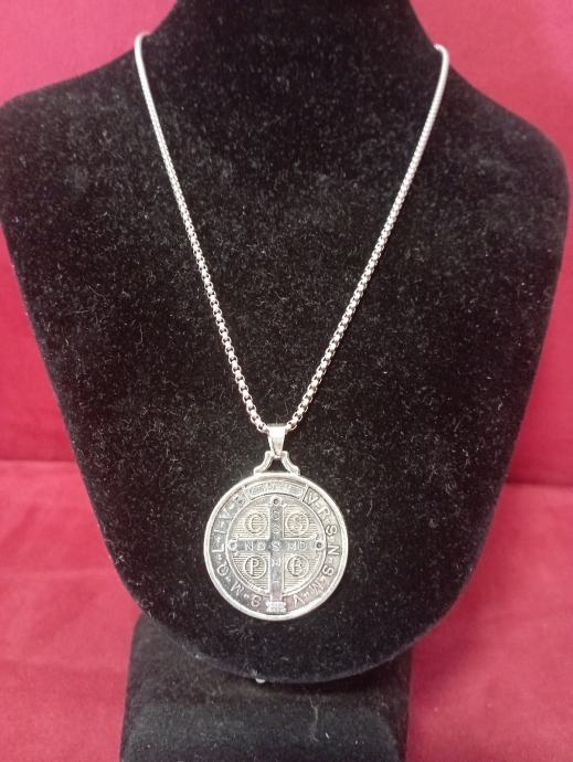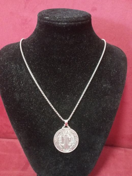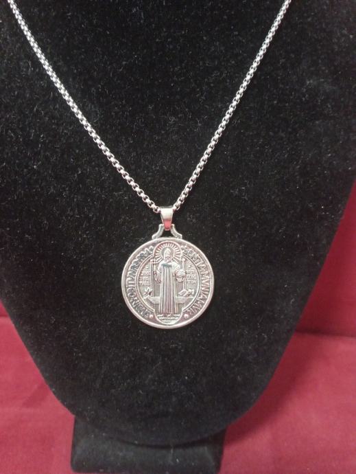 Medaljon svetog Benedikta sa lančičem,promjer medaljona 30 mm,dužina lančića 60 cm.