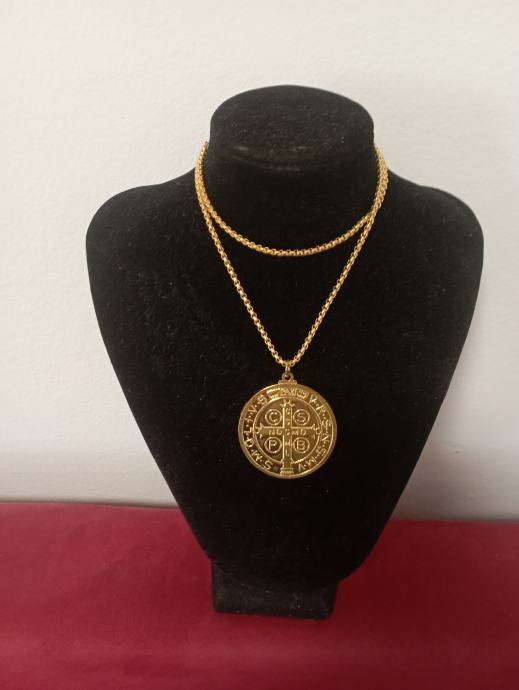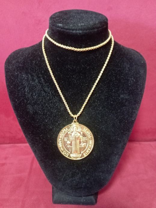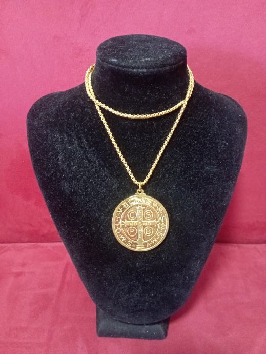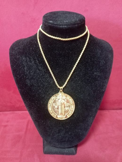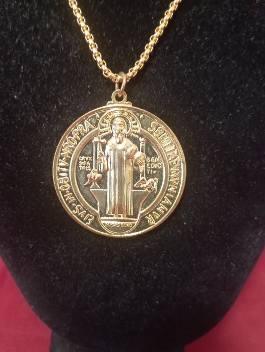 Medaljon svetog Benedikta sa lančičem,promjer medaljona 45 mm,dužina lančića 60 cm.
