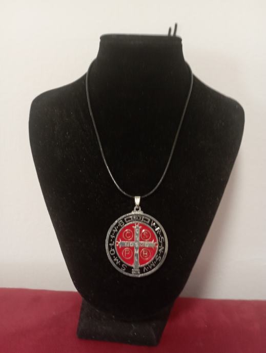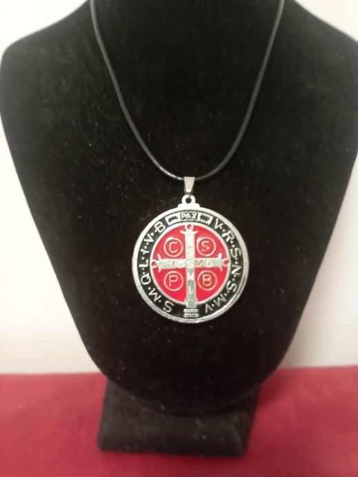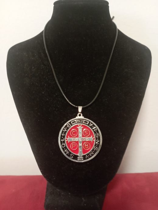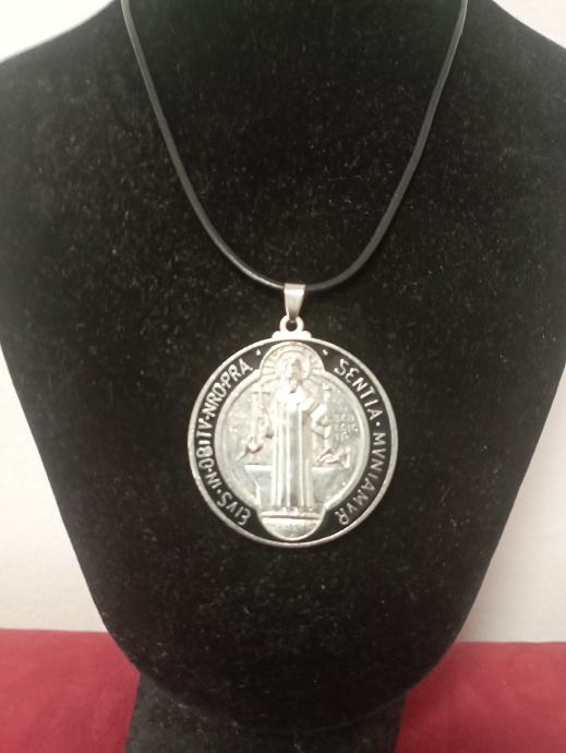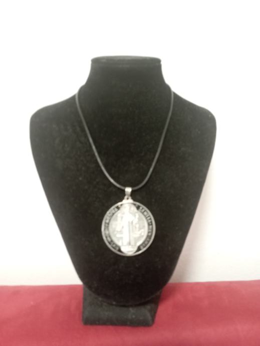 Medaljon svetog Benedikta sa kožom,promjer medaljona 45 mm,dužina lančića-kože 70 cm.