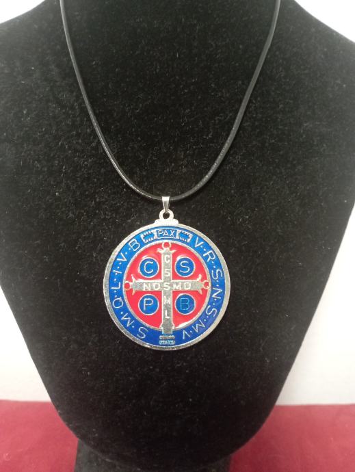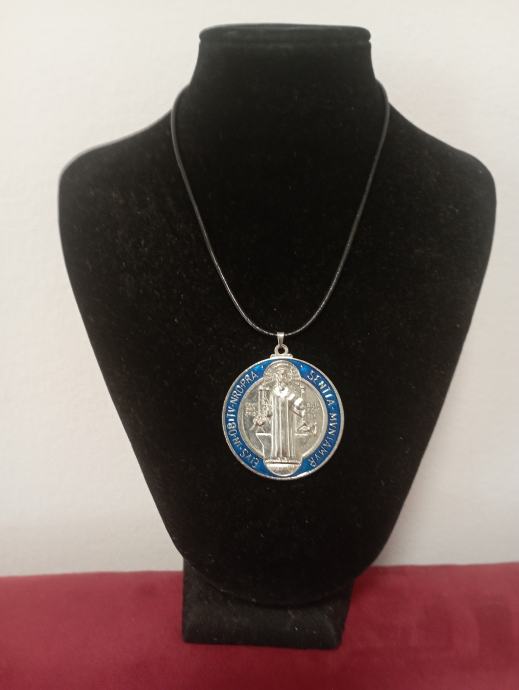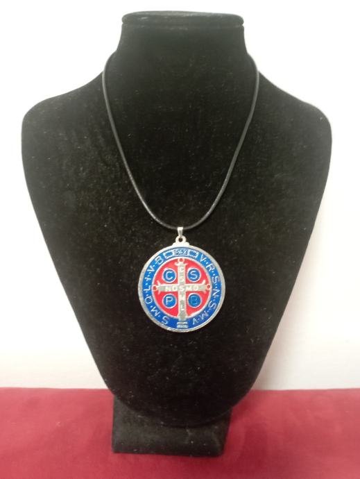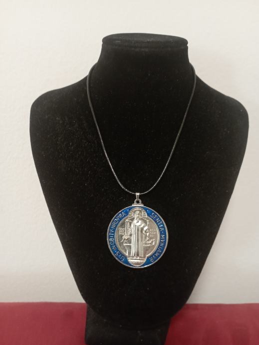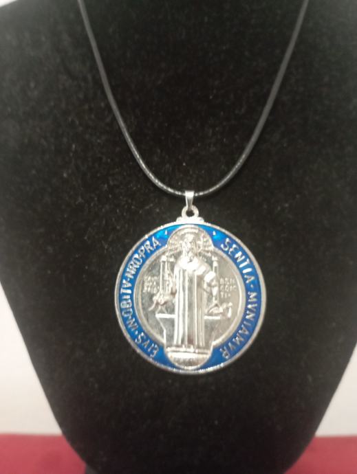 Poznat je medaljon sv. Benedikta, kojega mnogi nose oko vrata u vjeri da ih čuva od zla.Medaljon svetog Benedikta sa kožom,promjer medaljona 45 mm,dužina lančića-kože 70 cm.