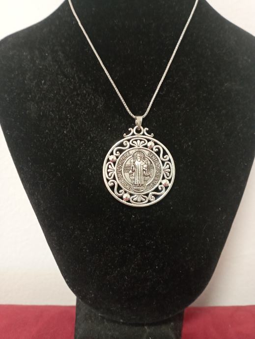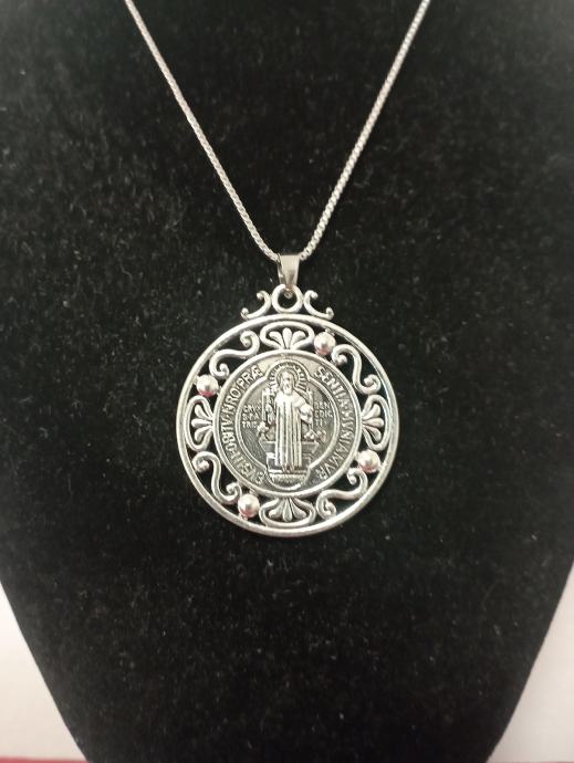 Poznat je medaljon sv. Benedikta, kojega mnogi nose oko vrata u vjeri da ih čuva od zla.Medaljon svetog Benedikta sa lančičem,promjer medaljona 40 mm,dužina lančića-60 cm.