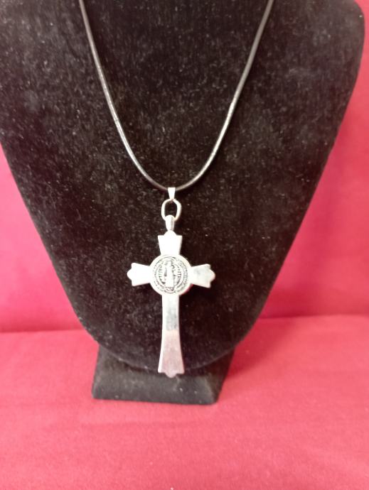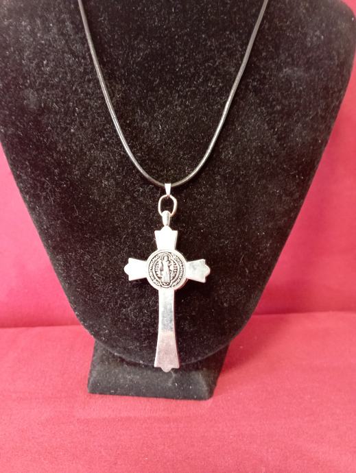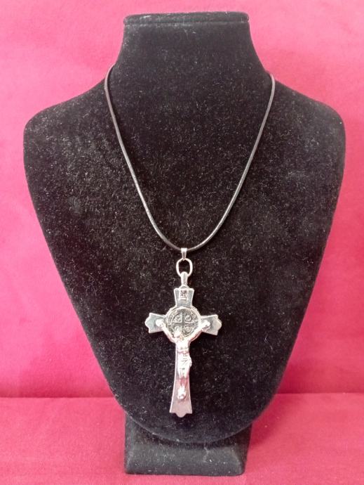 Poznat je medaljon sv. Benedikta, kojega mnogi nose oko vrata u vjeri da ih čuva od zla.Medaljon-križ svetog Benedikta (obostrani)sa kožom -70 cm. dužine.