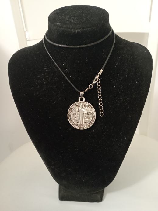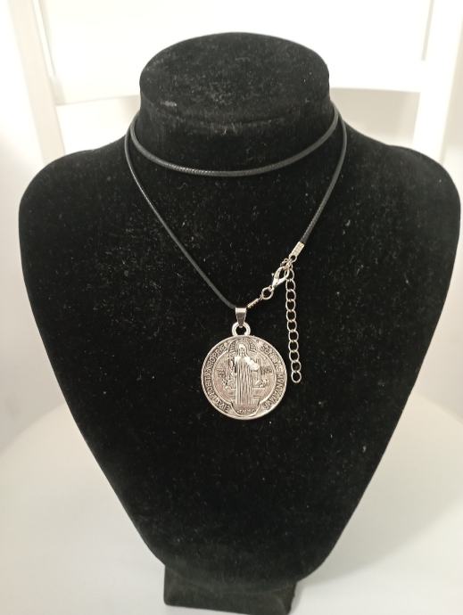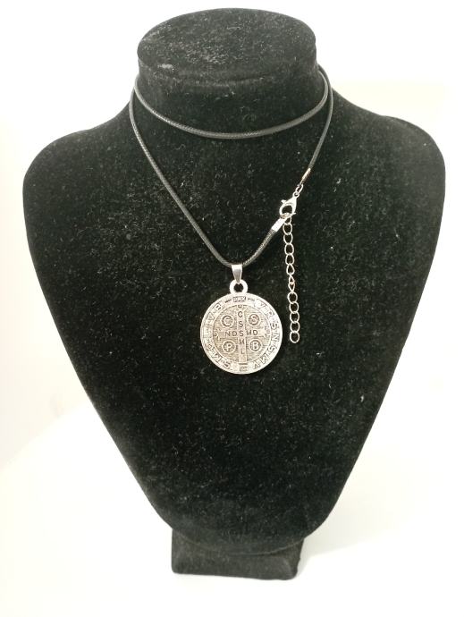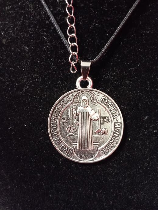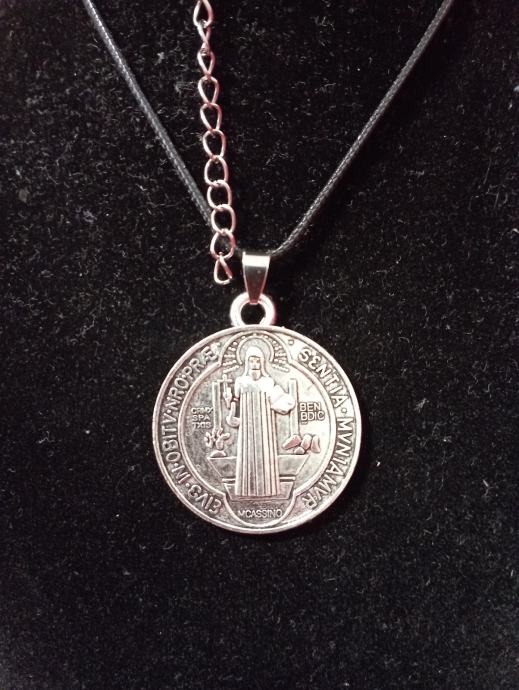 MEDALJON SVETOG BENEDIKTA, metalni,veliki-teži,posebni,reljefni.,promjera 35 mm.,medalja nosi naziv---medalja molitve,mira,zdravlja....uz medaljon ide lančić dužine 65 cm da se može nositi oko vrata,.medaljon nikada nije korišten-nošen,.pogledajte i druge moje oglase,.šaljem poštom,,tekući,tisak...