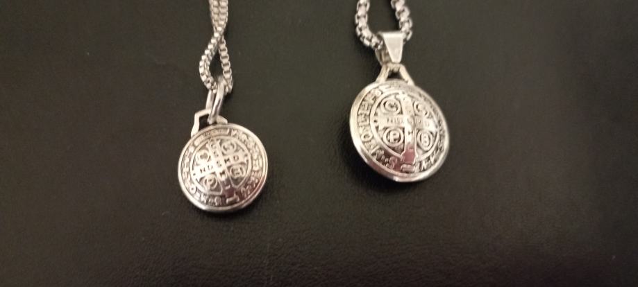 Poznat je medaljon sv. Benedikta, kojega mnogi nose oko vrata u vjeri da ih čuva od zla.Medaljoni (muški i ženski) svetog Benedikta sa lančićem, dužina lančića- 60 cm.Par,muški i ženski