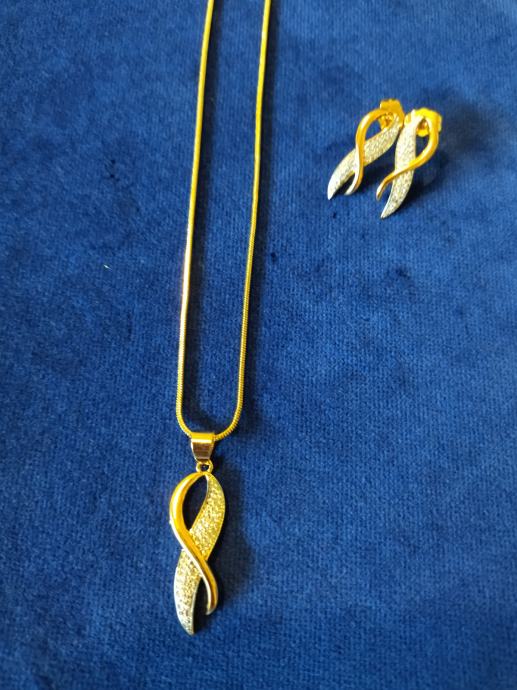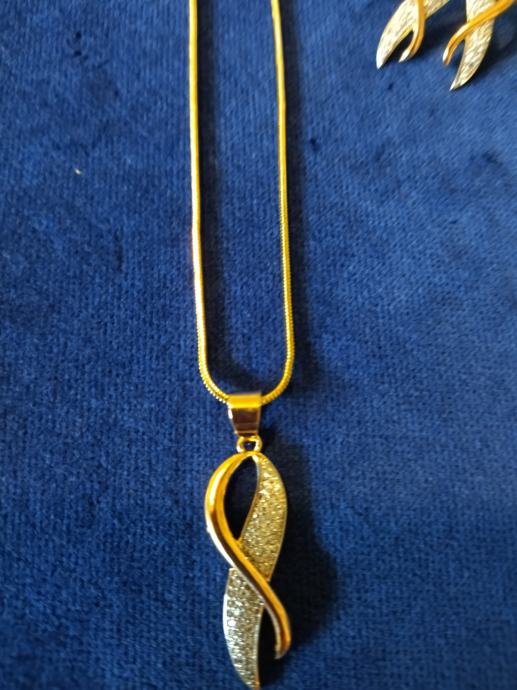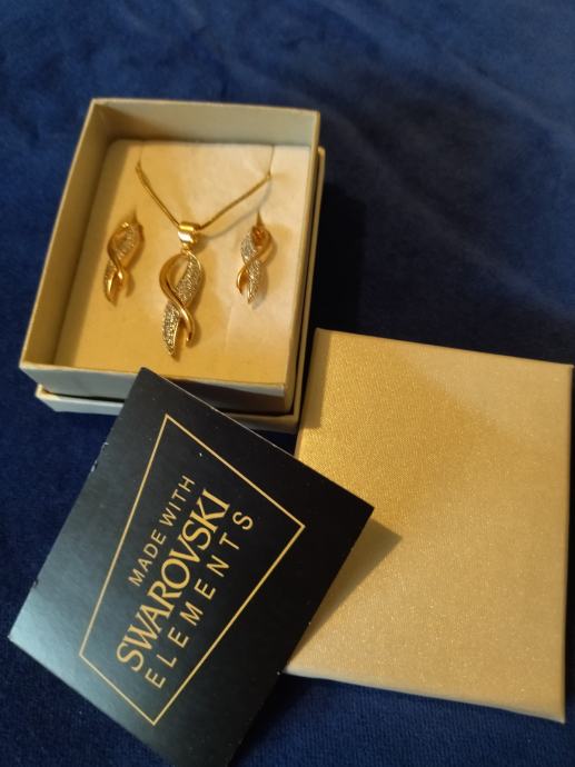 Lijep komplet Swarovski elements, ogrlica i naušnice u kombinaciji zlatne i srebrne boje.