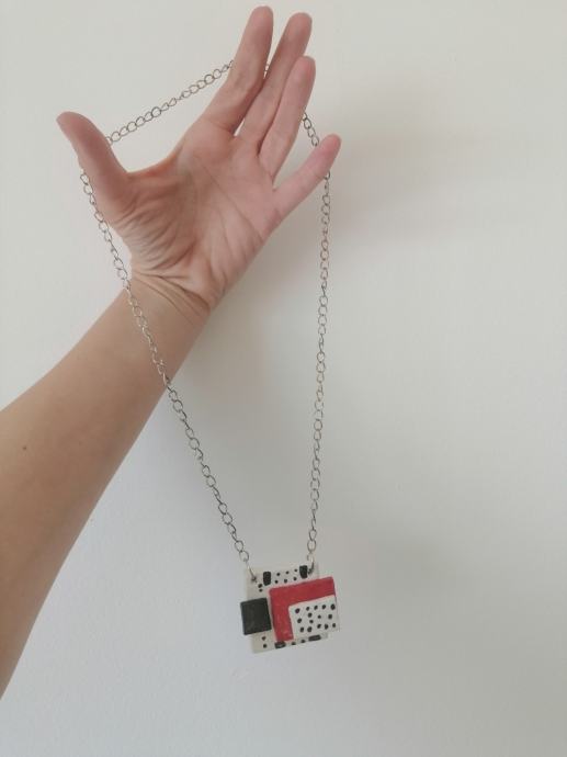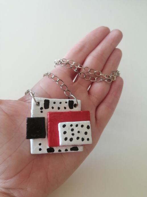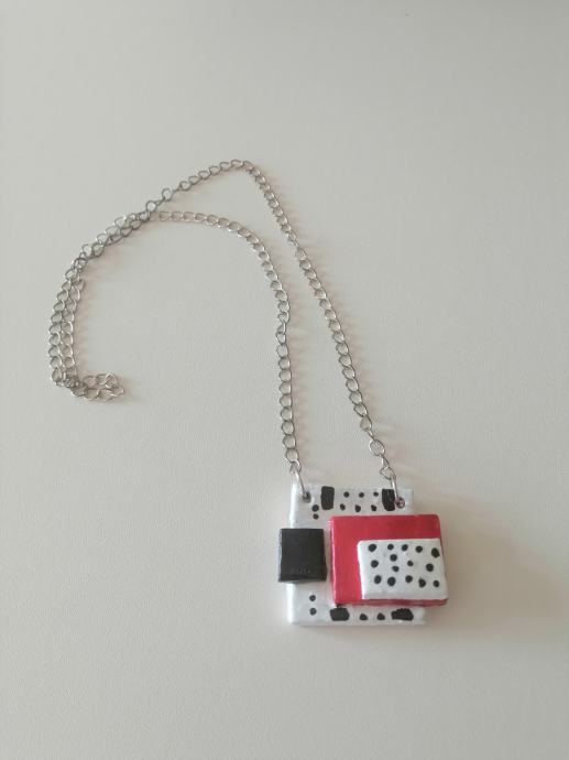 Unikat ogrlica na točkice - bijela, crna, crvena